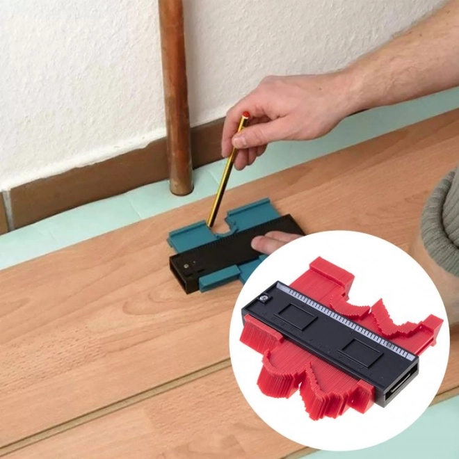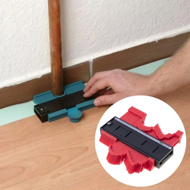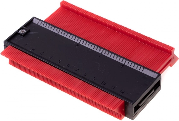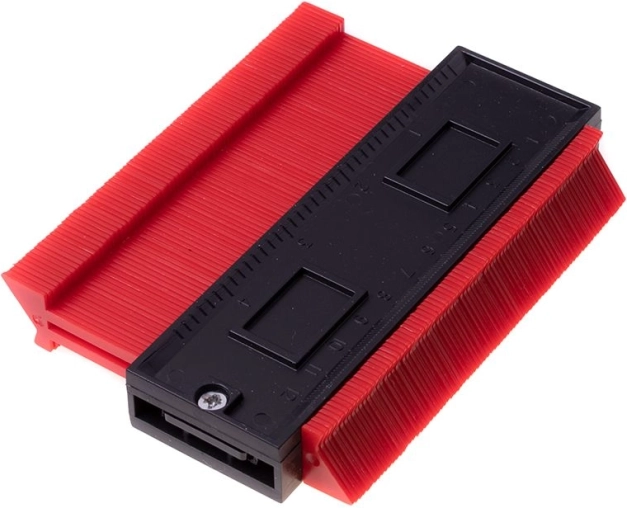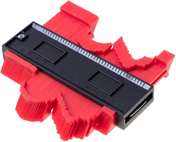 Kontūru šablons ir neaizstājams palīgs gan DIY entuziastiem, gan grīdu ieklājējiem un flīzētājiem. Pateicoties blīvajām adatiņām, tas precīzi nokopē cauruļu, cokolu, apmaļu un citu neregulāru objektu profilu un pārnes to uz materiālu, kuru nepieciešams zāģēt. Tas taupa laiku un samazina kļūdu iespējamību detaļu pielāgošanā.