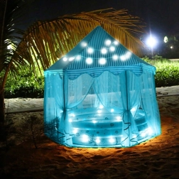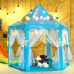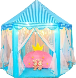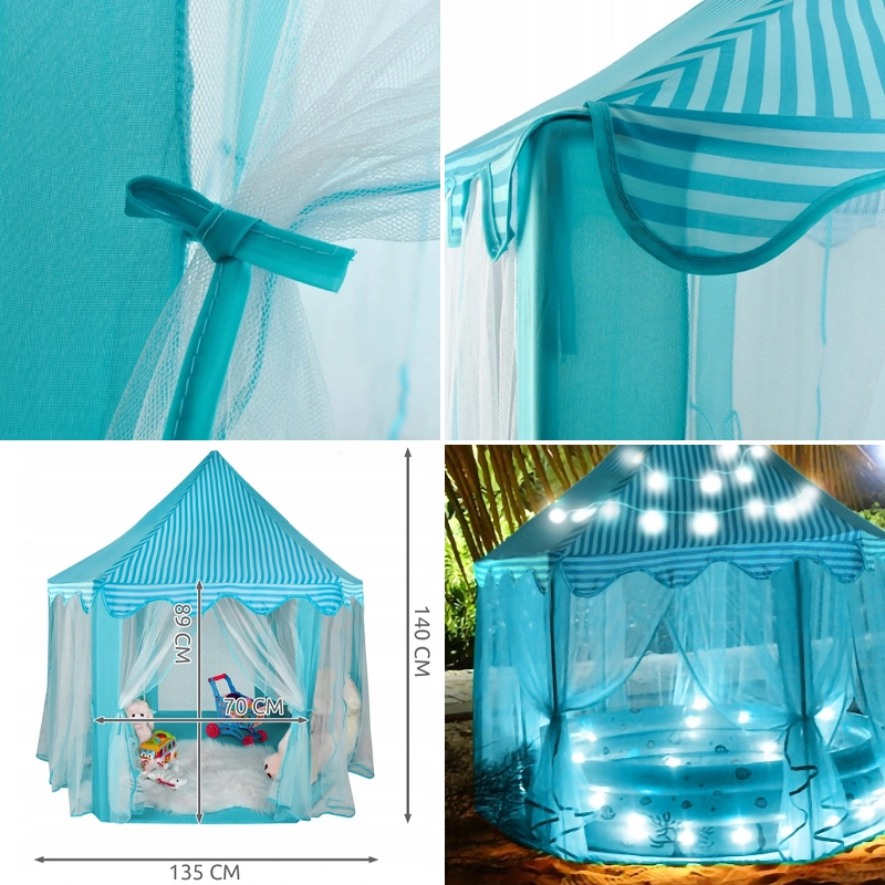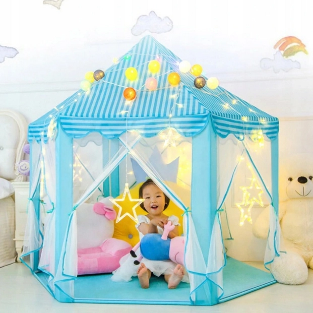 Šī sešstūra bērnu telts ir lieliska izvēle visām mazajām princesēm un prinčiem, kuri vēlas burvīgu vietu savām rotaļām. Pateicoties gaisīgam dizainam ar iespēju pārvietot aizkarus, teltī ir pietiekami daudz vietas vairākiem bērniem. Tā ātri salokāma un pārnēsājama, pateicoties komplektā iekļautajai uzglabāšanas somai ar rokturi.