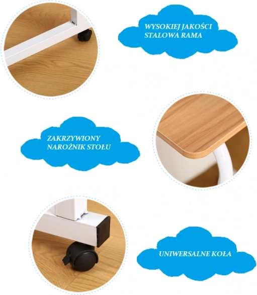 Pateicoties plūdenai augstuma regulēšanai 70–90 cm, galdiņu var pielāgot darbam sēdus un stāvus. Četri grozāmi ritentiņi ar fiksāciju ļauj ātri un droši pārvietot galdu, piemēram, zem gultas vai pie dīvāna. Elegants, universāls krāsu risinājums viegli iekļaujas jebkurā interjerā.