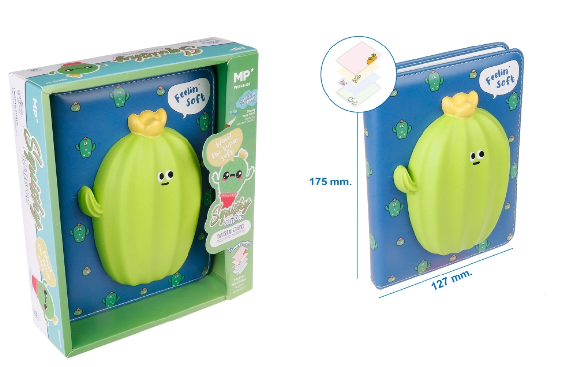 Stilīga un praktiska piezīmju grāmata, kas iepriecinās jau pirmajā pieskārienā. Cietie vāki pasargā saturu, bet vāku rotā gardi mīlīgs kaktusa squishy motīvs. Pateicoties kompaktajam formātam, tā der gan rokassomiņai, gan skolas mugursomai un ir ideāla ikdienas lietošanai.