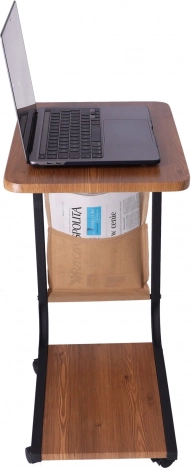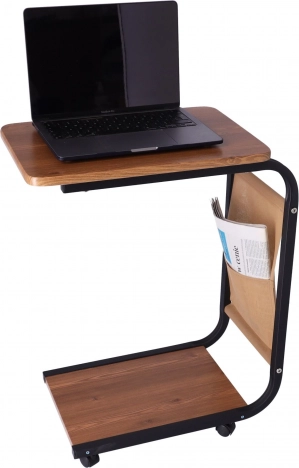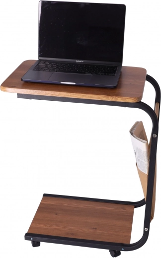 Šo daudzfunkcionālo galdiņu var viegli daļēji pabīdīt zem gultas vai dīvāna, lai klēpjdators, kafija vai pults vienmēr būtu pa rokai. Četri pārvietojami ritenīši nodrošina plūdenu transportēšanu starp telpām, un stabilā metāla konstrukcija ar tumša koka dekoru piešķir interjeram mūsdienīgu izskatu.