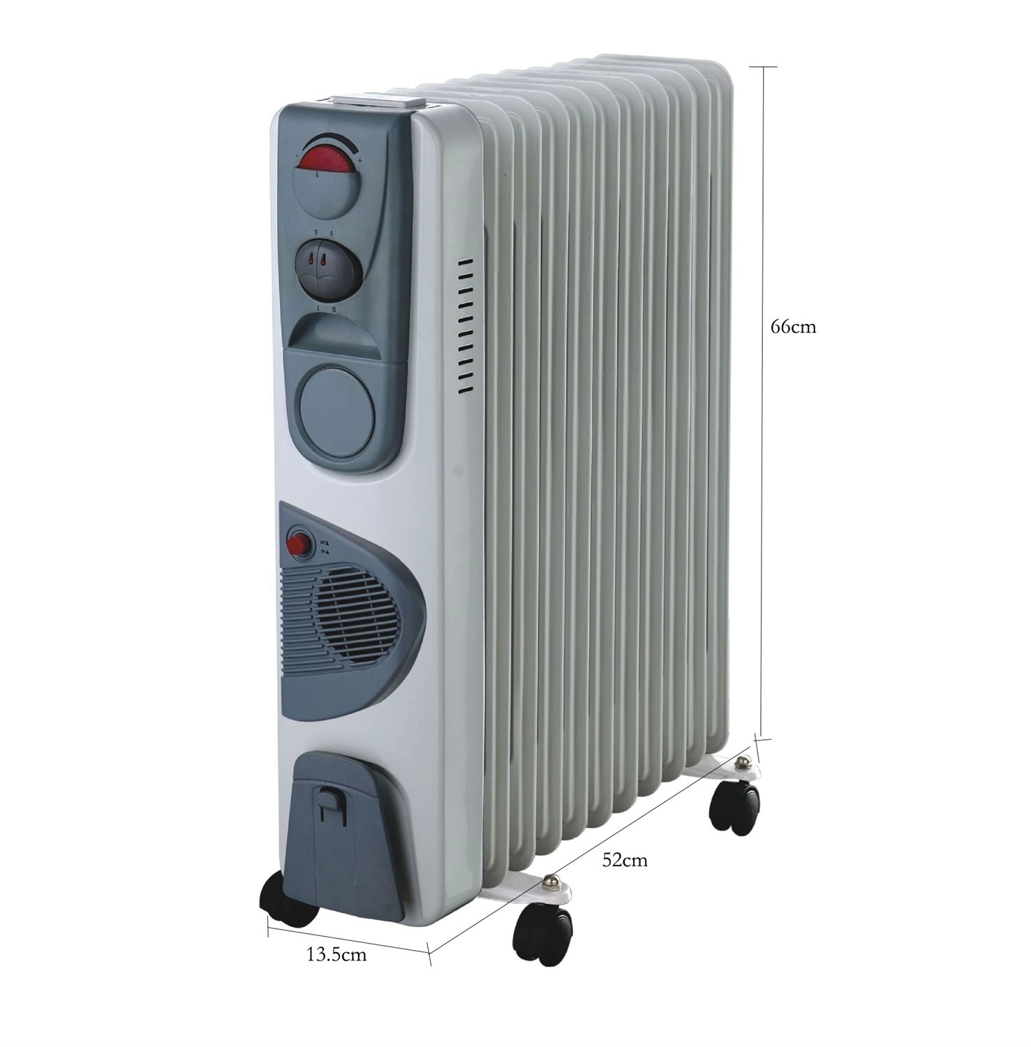 Eļļas elektriskais sildītājs NIKURA ar 11 ribām ir lielisks risinājums telpu apsildei mājās un birojos. Silda līdz 25 m² un ir ideāls risinājums centrālās apkures traucējumu gadījumā. Pateicoties eļļas pildījumam un jaudai līdz 2900 W, tas nodrošina vienmērīgu siltumu.