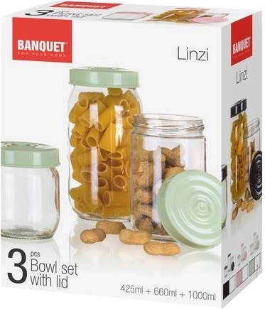Praktisks trīs stikla trauku komplekts LINZI ar tilpumiem 425 ml, 660 ml un 1000 ml lieliski piemērots pārtikas uzglabāšanai – no garšvielām līdz makaroniem un cukuram. Katram traukam ir cieši noslēdzams vāciņš granīta dekorā, kas palīdz saglabāt saturu svaigu un aizsargātu. Izturīgs stikls, stilīgs granīta izskats un praktiski izmēri padara LINZI komplektu par elegantu papildinājumu jebkurai virtuvei no zīmola BANQUET.