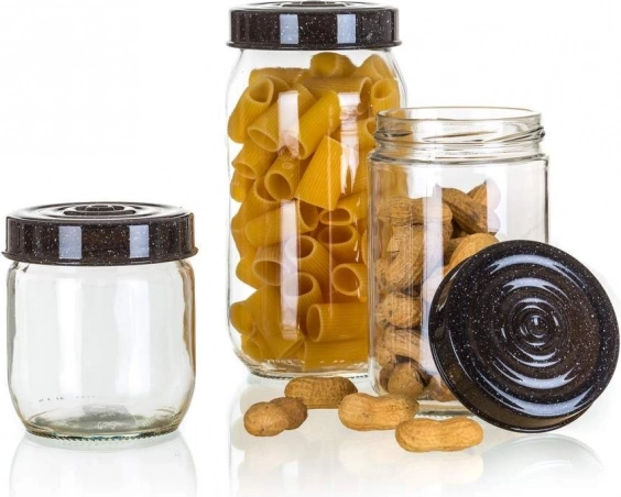 Uzturiet kārtību un stilu gan uz virtuves virsmas, gan pieliekamajā. Stikla trauku komplekts LINZI apvieno kvalitatīvu stiklu ar hermētisku plastmasas vāciņu modernā granīta dekorā. Trīs dažādi tilpumi ļauj pārskatāmi glabāt plašu izejvielu klāstu – no sīkām garšvielām līdz beramām pārtikas precēm.
