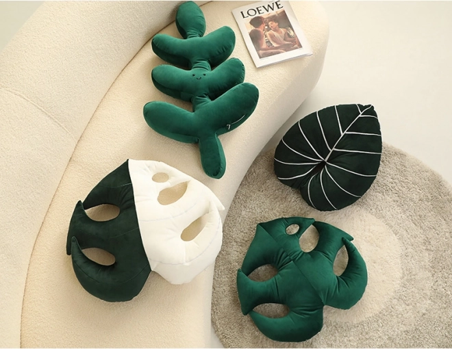 Dekoratīvs plīša spilvens lapas formā