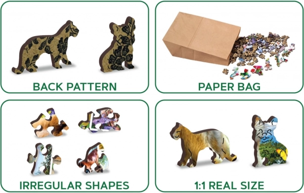 Katrs no 1010 gabaliem ir atšķirīgs, tāpēc jūs gaida gudrs izaicinājums un gandarījums par rezultātu. Pēc salikšanas rodas krāsaina dzīvnieku motīvu kolāža, kas lieliski izskatās kā dekorācija uz sienas vai plaukta. Zīmols WOODEN CITY domā par ilgtspēju – bez plastmasas iepakojumiem, no kvalitatīvas koksnes un ar ilgu kalpošanas laiku.