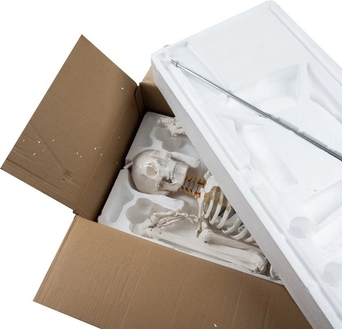 Iepakojumā iekļauts plakāts, kas attēlo cilvēka skeletu, lai labāk ilustrētu cilvēka anatomiju.