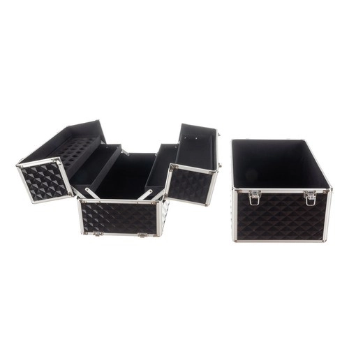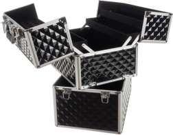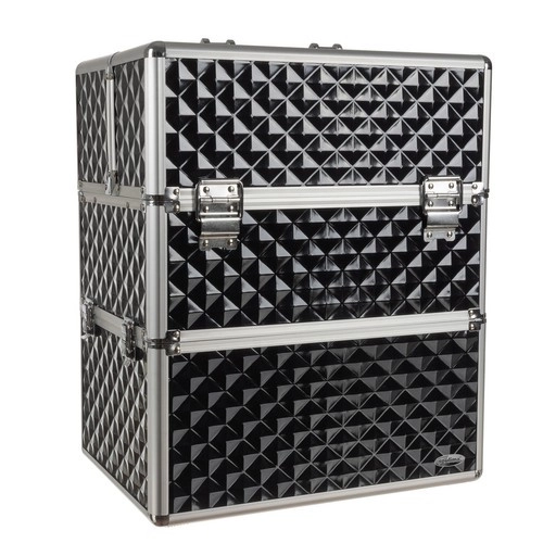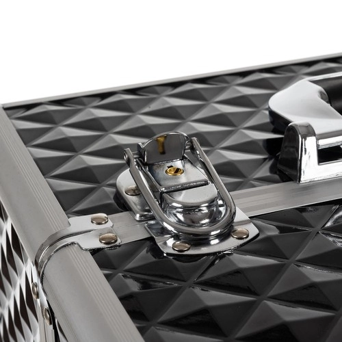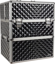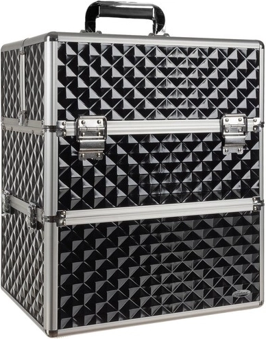 Kosmētikas koferis XL Soulima ir izstrādāts, lai atbilstu mūsdienu sievietes vajadzībām, kura meklē ērtu un stilīgu veidu savu kosmētikas un personīgo piederumu organizēšanai. Tas ir izgatavots no kvalitatīva plastmasas un metāla, melnā un sudrabotā krāsa piešķir elegantumu.