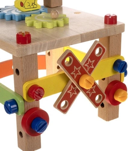 Izklaide un mācīšanās: Šī interaktīvā rotaļlieta lieliski attīsta radošumu un sīko motoriku. Krāsainie elementi un zobrati rada mehāniskas skaņas, kas veicina bērnu sensorās integrācijas attīstību.