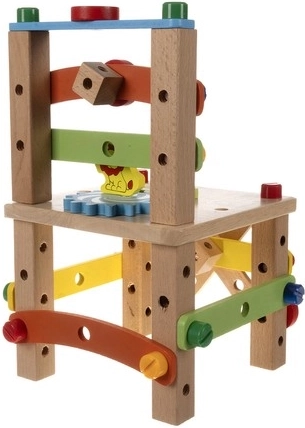 Krēsls tiek piegādāts detaļās, kuras var viegli salikt ar komplektā iekļauto instrumentu palīdzību. Bērni var izveidot savu projektu.