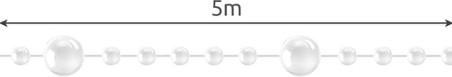 Pērļu ķēdīte baltā–pērļainā tonī ir laikmetīgs akcents svētku un visa gada kompozīcijām. Pateicoties 5 m garumam, tā ērti aptver vidēja izmēra egli, izrotā virtenes, vainagus un galda dekorus, neaizsedzot jūsu iemīļotās rotas.