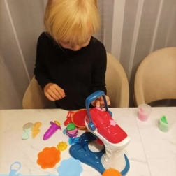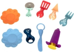 Iepakojumā atradīsiet 5 modelēšanas masas trauciņus dažādās krāsās, kuras var savā starpā sajaukt un veidot jaunus toņus. Bagātīgais instrumentu komplekts (nazītis, dakšiņa, karote, šķīvīši, kausiņi un dažādi uzgaļi) veicinās radošu spēli, prasmju attīstību un jautru spēlēšanos pavāros.