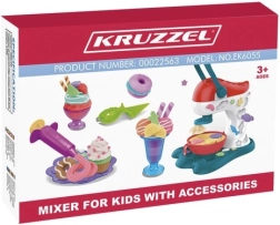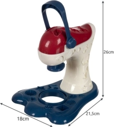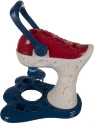 Šis košais radošais komplekts ar presēšanas mašīnu miksera formā ļauj bērniem vienkārši izspiest, spiedogot un modelēt visdažādākos gardumus. Miksera svira darbojas viegli, tāpēc ar to tiks galā arī mazāki bērni. Komplektā ir arī šļirce masas izspiešanai un bļodiņa ar formiņām.