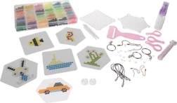 Radošais ūdens pērlīšu komplekts sniedz stundām ilgu izklaidi bērniem un vecākiem. Iepakojumā atradīsiet 2800 pērlītes 24 košās krāsās, divus šablonus (kvadrāts un sešstūris), 8 kartītes ar paraugiem un praktiskus instrumentus, tostarp smidzinātāju. Izveidotos motīvus pēc novietošanas uz šablona vieglītiņām apsmidziniet ar ūdeni, un pēc izžūšanas tie turas kopā – bez gludināšanas.