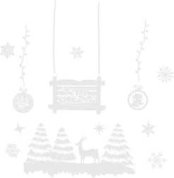Komplektā ir iecienīti motīvi: Ziemassvētku eglīte, ziemeļbrieži, sniegavīrs, piekaramas bumbas, sniegpārslas un uzraksts Merry Christmas. Pateicoties universālajam baltajam noformējumam, tie iederas jebkurā interjerā un skatlogā un rada svētku atmosfēru visas adventes laikā.
