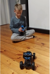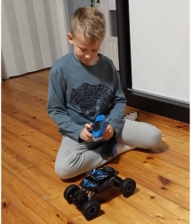 Tālvadības pults ir izstrādāta, lai perfekti ērti turētos rokā un piedāvā intuitīvu, komfortablu vadību ar darbības rādiusu līdz 50 metriem. Izbaudiet ilgu braukšanu ar akumulatoru, kuru var viegli uzlādēt ar komplektā iekļauto lādētāju.