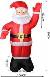 Liela Ziemassvētku dekorācija, kas apburs gan bērnus, gan pieaugušos. Uzpūšamais Ziemassvētku vecītis ar LED apgaismojumu un augstumu 180 cm ir pašuzpūšams, laikapstākļu izturīgs (IP44) un paredzēts lietošanai ārā un iekštelpās. Komplektā atradīsiet enkurus, auklas un adapteri ātrai un drošai uzstādīšanai.