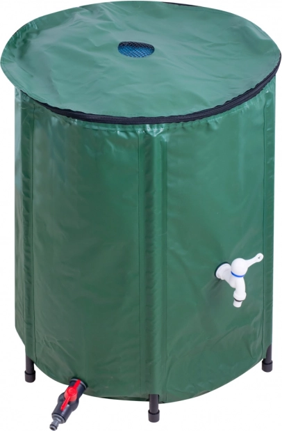 Izmantojiet bez maksas pieejamo lietusūdeni dārza, zāliena laistīšanai vai āra virsmu mazgāšanai un samaziniet dzeramā ūdens patēriņu no ūdensvada. Saliekamā tvertne ar 500 l tilpumu ir izgatavota no kvalitatīva PVC, kas ir izturīgs pret UV starojumu un nodilumu. Augšējais vāks ar dubulto rāvējslēdzēju un smalku tīklu ielaiž tikai ūdeni un aiztur lapas un netīrumus.