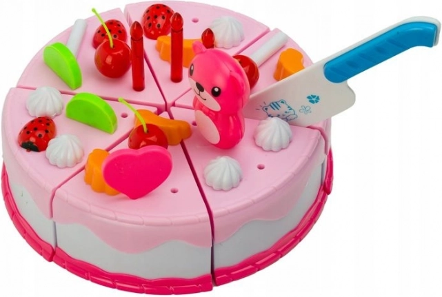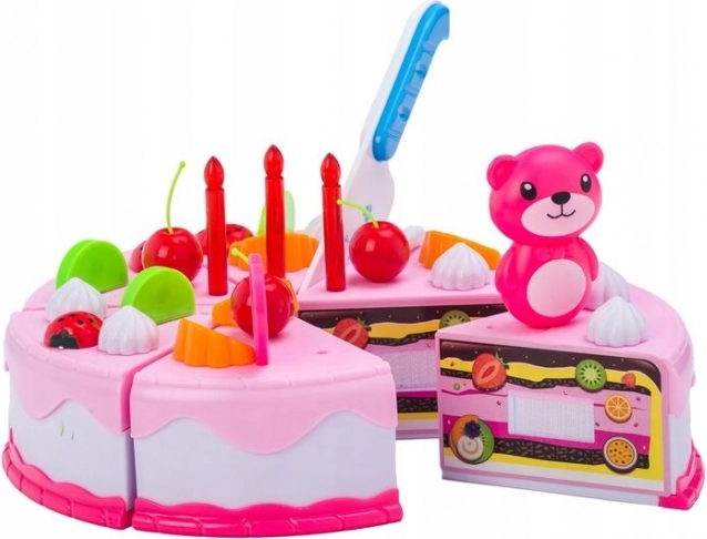 Plašs 80 daļu dzimšanas dienas kūkas komplekts mazajiem konditoriem sniedz stundām ilgu izklaidi un mācīšanos. Daļas savienotas ar lipekli, lai bērni varētu kūku griezt ar nazi un atkal salikt. Komplektā ir arī spīdoša svece, šķīvji un galda piederumi un kafijas servīze ar krūzītēm. Interaktīvā rotaļlieta attīsta sīko motoriku, iztēli un radošumu, patstāvīgi rotājot kūku ar augļiem, svecītēm un mīlīgām dekorācijām.
