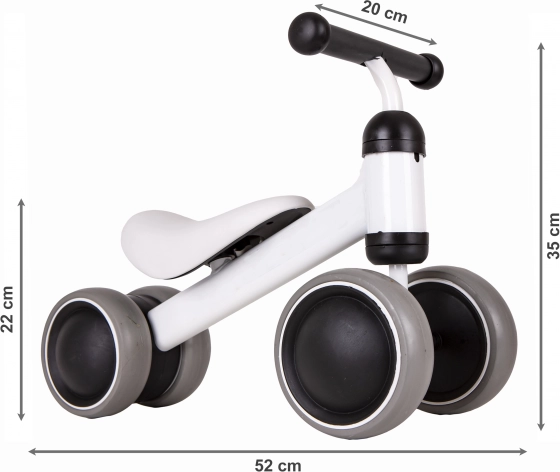 Piemērots bērniem vecumā no 18 līdz 36 mēnešiem ar maksimālo slodzi līdz 20 kg. Izmēri: 52x35x22 cm.