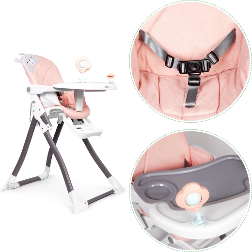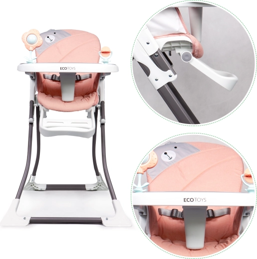 Praktisks un drošs ECOTOYS ēdamkrēsliņš bērniem no 6 līdz 36 mēnešiem. Piedāvā stabilu konstrukciju, noņemamu un regulējamu paplāti ar divām daļām ēšanai un rotaļām, polsterētu sēdekli ar drošības jostām un ātru salikšanas sistēmu. Pateicoties regulējamajam kāju balstam un paaugstinātajām paplātes malām, barošana ir tīrāka, ērtāka un drošāka.