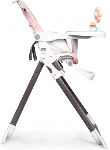 - Noņemama paplāte ar regulējamu pozīciju un divām rotaļlietām izklaidei sēžot.