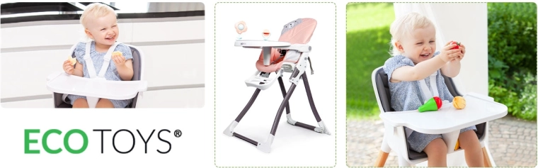 Izbaudiet mierīgas maltītes pie viena galda ar mazuli. ECOTOYS ēdamkrēsliņš palīdz bērniem atdarināt pieaugušos, apgūt pareizus paradumus un vienlaikus nodrošina maksimālu komfortu un drošību. Plata paplāte kalpo ne tikai ēšanai, bet arī izklaidei – jūsu bērns var celt klucīšus vai zīmēt.