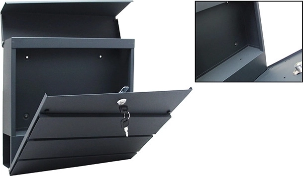 Uzstādīšana ir vienkārša, jo komplektā iekļauti montāžas dībeļi, un kastei ir divas atslēgas drošai aizslēgšanai. Tās izmēri 37 cm x 37 cm x 10 cm nodrošina pietiekamu ietilpību ikdienas pastam.