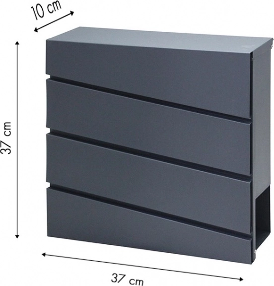 Elegants un laikmetīgs kastes dizains antracīta krāsā lieliski papildinās jūsu mājas, biroja vai uzņēmuma eksterjeru.