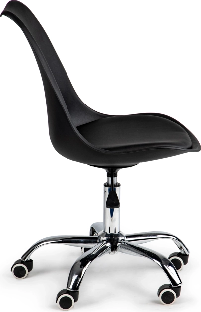 Pateicoties gāzes pacēlājam, varat viegli iestatīt ideālu sēdes augstumu, lai jūsu ergonomika pie darba galda vienmēr būtu perfekta. Stabilā hromētā pamatne ar pieciem zariem un klusās gumotās riteņgalvas nodrošina plūdenu pārvietošanos un vienlaikus aizsargā grīdu no skrāpējumiem.