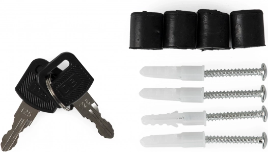 Jūs saņemsiet montāžas komplektu, kurā ir četri dībeļi un distances paplāksnes ērtai uzstādīšanai.