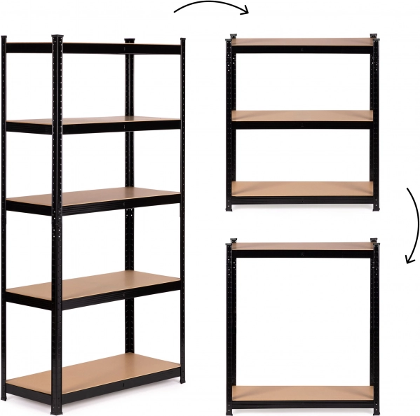 Iepazīstinām ar metāla plauktu no zīmola ModernHome, kas piedāvā piecus izturīgus plauktus ar maksimālo katra nestspēju līdz 150 kg. Plaukts ir izgatavots no cinkota tērauda, kas nodrošina ilgu kalpošanas laiku un konstrukcijas stabilitāti.