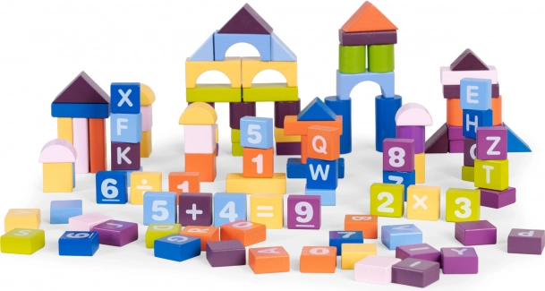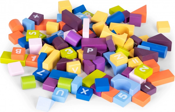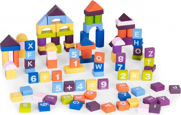 Šis bagātīgais koka klucīšu komplekts bērniem piedāvā nebeidzamas būvēšanas un mācīšanās iespējas. Pateicoties burtiem, cipariem un matemātiskajiem simboliem, bērni jautrā veidā trenē alfabētu, skaitīšanu un loģisko domāšanu. No izturīgiem taisnstūriem un cilindriem līdz lokiem un torņiem – katra detaļa aicina atklāt un radīt.