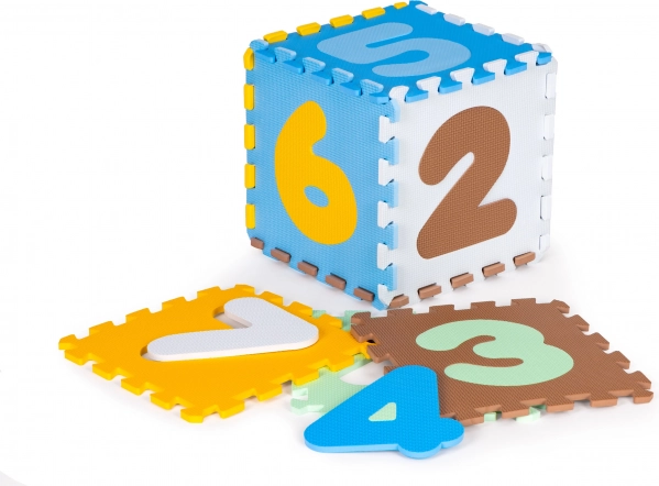 Izņemamie cipari attīsta atpazīšanu un sīko motoriku. No puzles var veidot arī 3D formas, piemēram, kubu vai torni.