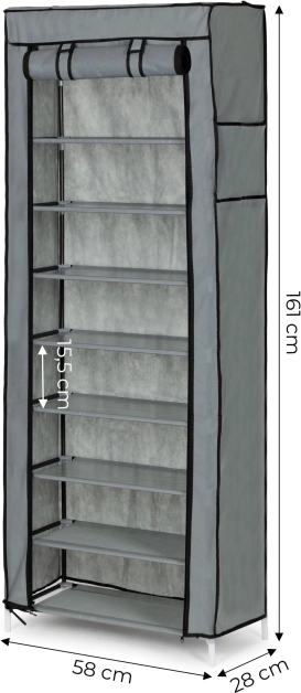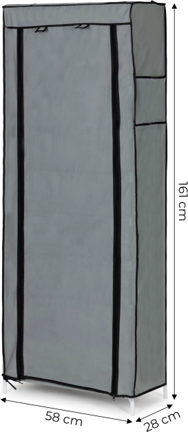 Rullo aizsegs ar diviem rāvējslēdzējiem pasargā glabātās lietas no putekļiem un nodrošina ātru piekļuvi. Kompaktie izmēri 58 × 28 × 161 cm ir piemēroti arī mazākām telpām.