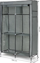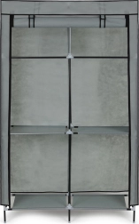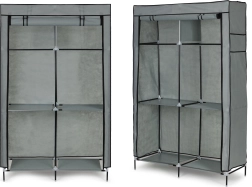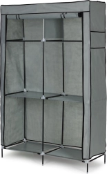 Meklējat praktisku risinājumu kompaktai un pārskatāmai apģērbu uzglabāšanai? Tekstila drēbju skapis MODERNHOME elegantā pelēkā krāsā apvieno plašu uzglabāšanas vietu ar vieglumu un mobilitāti. Pateicoties 2 pakaramo stieņiem un 4 izturīgiem plauktiem, ērti novietosiet kreklus, kleitas, jakas, salocītu veļu un apavus.