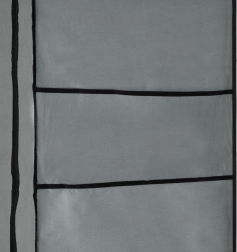 Rāmis no metāla caurulēm ar PP savienotājiem nodrošina izturību arī pilnas slodzes laikā. Plaukti no izturīga tekstila ir nostiepti, lai palielinātu visa skapja stingrību.
