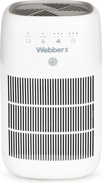 Webber gaisa sausinātājs un gaisa attīrītājs apvieno modernās PureAir tehnoloģijas ar efektīvu sausināšanu, samazinot mitrumu telpās, ierobežojot pelējuma veidošanos un logu aizsvīšanu, vienlaikus filtrējot putekļus, alergēnus un smakas. Trīspakāpju filtrācija (priekšfiltrs, oglekļa filtrs un HEPA 13) aiztur līdz 99,97% daļiņu no 0,3 µm – ideāls risinājums alerģijas slimniekiem un ģimenēm ar bērniem.