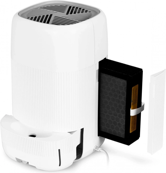 Kompakta 2‑vienā ierīce veselīgām mājām: gaisa sausinātājs un gaisa attīrītājs ar 3 pakāpju HEPA 13 filtrāciju noņem līdz 99,97% daļiņu no 0,3 µm, sausina līdz 750 ml/dienā 1 l tvertnē. Pateicoties Auto‑Defrost darbojas temperatūrā 5–50 °C, piedāvā klusu darbību, taimeri un 2 režīmus maksimālam komfortam un drošībai.