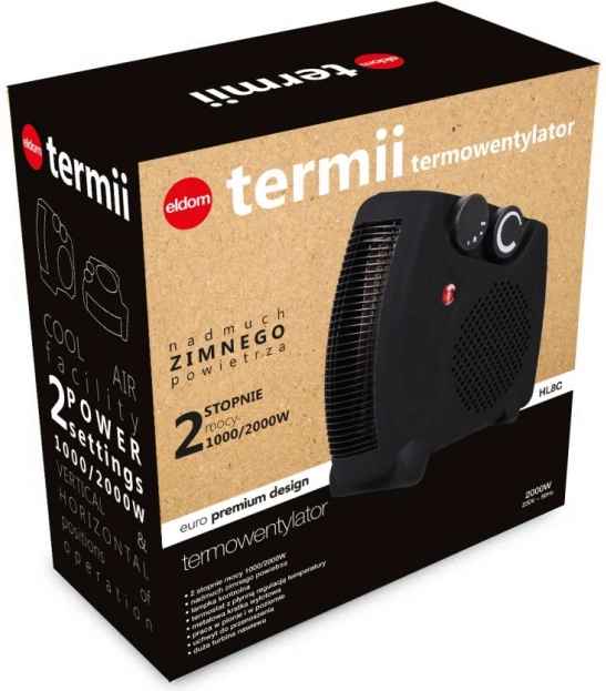 Ventilatora sildītājs Eldom Termii piedāvā elastību un ērtības, ļaujot izvēlēties sākotnējo gaisa temperatūru. Tas ir aprīkots ar kontroles lampiņu vienkāršai uzraudzībai un ietver ērtus vadības kloķus gaisa temperatūras regulēšanai – gan siltam, gan aukstam gaisam.