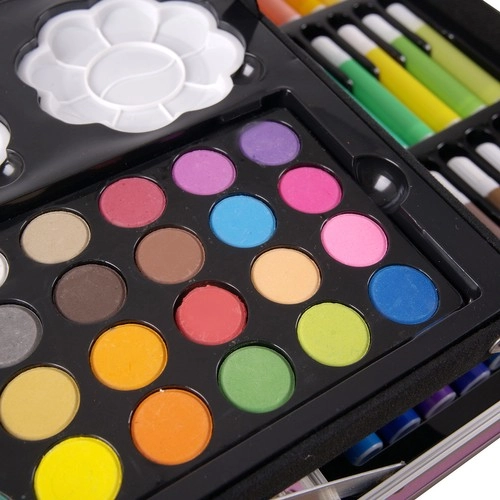 • Viss vienuviet: 144 daļas, tostarp krāsas, krāsainie zīmuļi, flomāsteri, otas un piederumi.