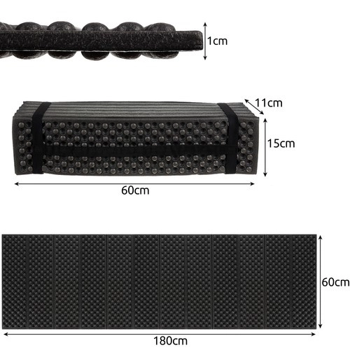 Šis salokāmais paklājiņš ar izmēriem 180 × 60 × 1 cm ir izgatavots no kvalitatīvām EVA putām, kas izceļas ar zemu svaru, ilgu kalpošanas laiku un izcilām termoizolācijas īpašībām. Profilētā virsma ar sīkiem izciļņiem palielina komfortu, samazina slīdēšanu un labāk izlīdzina reljefu.