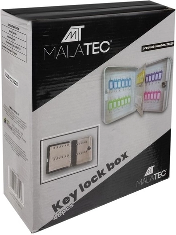 Praktiskais un izturīgais MALATEC atslēgu skapis ir izgatavots no dzelzs, nodrošinot augstāku drošību un ilgmūžību. Iekšpusē atradīsiet divas stabilas līstes un pārvietojamu “grāmatas” starpsienu – kopā 48 āķi atslēgām. Katru āķi var marķēt ar uzlīmi ar numuru 1–48, lai katrai atslēgai būtu skaidri noteikta vieta.