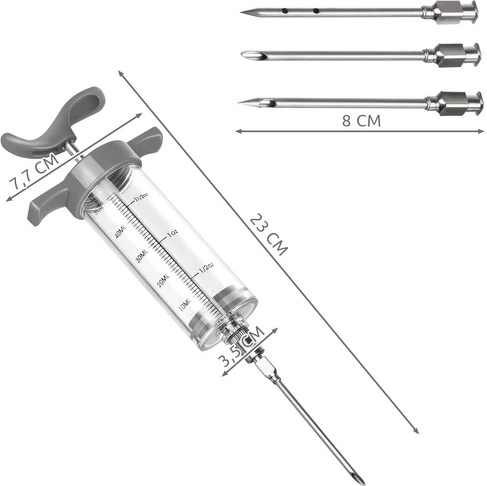 Šī virtuves injekcijas šļirce ir ideāli piemērota mājas kūpināšanai, cepšanai un grilēšanai. Tā ļauj ievadīt sālījumu, buljonus un marinādes tieši gaļas šķiedrās, kas ievērojami saīsina marinēšanas laiku un nodrošina vienmērīgu sālīšanu un garšas piešķiršanu. Caurspīdīgais korpuss ar ml iedaļām atvieglo precīzu dozēšanu.