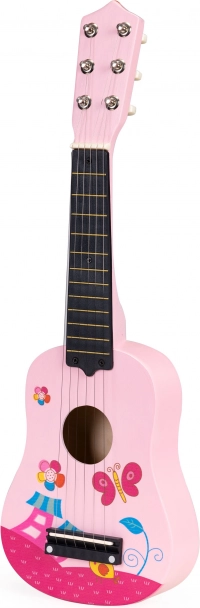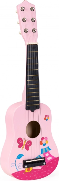 Bērnu rozā koka ģitāra ar metāla stīgām ECOTOYS