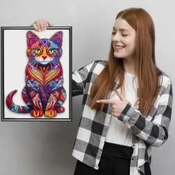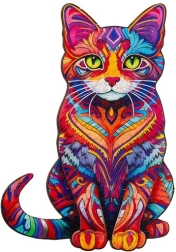 Stilīga koka puzle ar kaķa motīvu aizrauj ar spilgtām krāsām un precīzu izpildījumu. Atšķirībā no klasiskām taisnstūra puzlēm gala attēlam ir sēdoša kaķa siluets, kas padara likšanu vēl interesantāku. Pateicoties lāzera izgriezumam, atsevišķie gabaliņi precīzi pieguļ un puzle ir izturīga un ilgmūžīga.
