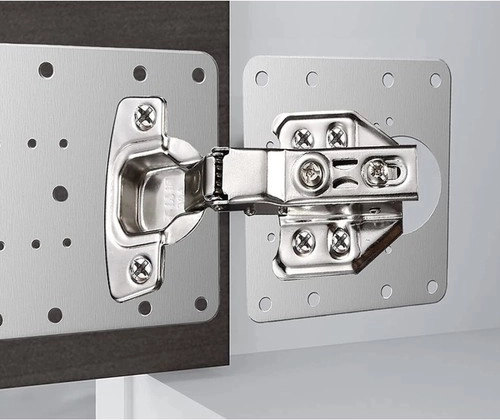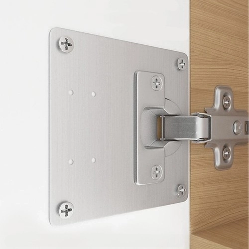 Komplektā ir 4 plāksnes un montāžas skrūves, kas der lielākajai daļai tirgū pieejamo mēbeļu eņģu.