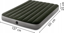 Izbaudiet ērtu miegu mājās un ceļā ar divvietīgo uzpūšamo matraci INTEX. Pateicoties tehnoloģijai Dura-Beam Fiber, patīkamajai samta virsmai un izmēriem 191 × 137 × 25 cm, tas piedāvā stabilitāti, mugurkaula atbalstu un vienkāršu kopšanu. Lieliska izvēle viesiem, kempingam un nedēļas nogales izbraucieniem.