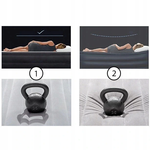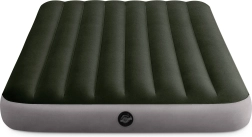 Divvietīgais uzpūšamais matracis INTEX apvieno izturīgu PVC pamatni ar mīkstu, ūdensizturīgu samta virsmu lielākam gulēšanas komfortam. Iekšējā konstrukcija ar Dura‑Beam Fiber stabilizējošām šķiedrām izlīdzina spiedienu, samazina nevēlamu šūpošanos un nodrošina ergonomisku muguras atbalstu visas nakts garumā.