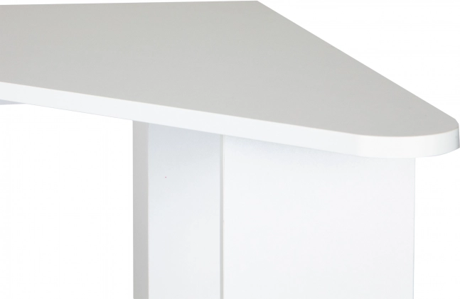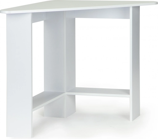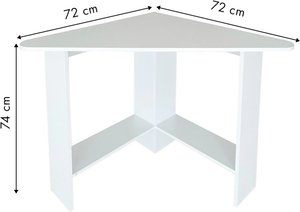 Modernais stūra galds ir ideāla izvēle mazākām telpām, kur svarīgs ir katrs centimetrs. Trīsstūrveida konstrukcija viegli ievietojama stūrī un veido stabilu darba virsmu ar tīrām līnijām. Virsma un plaukti ir no izturīgas laminētas kokskaidu plātnes, ko ir viegli kopt un kas izskatās eleganti.